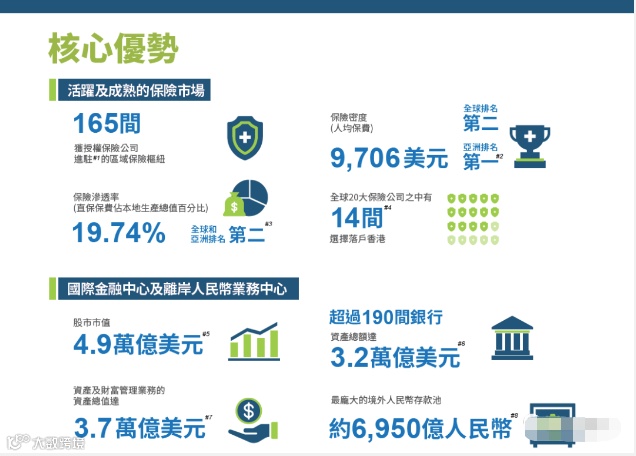 ①全球20大保险公司中,14间在香港设立机构,并将其作为重要战略要地;