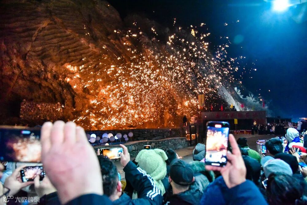 游客在土门关驿道小镇观看打铁花表演。(土门关供图)