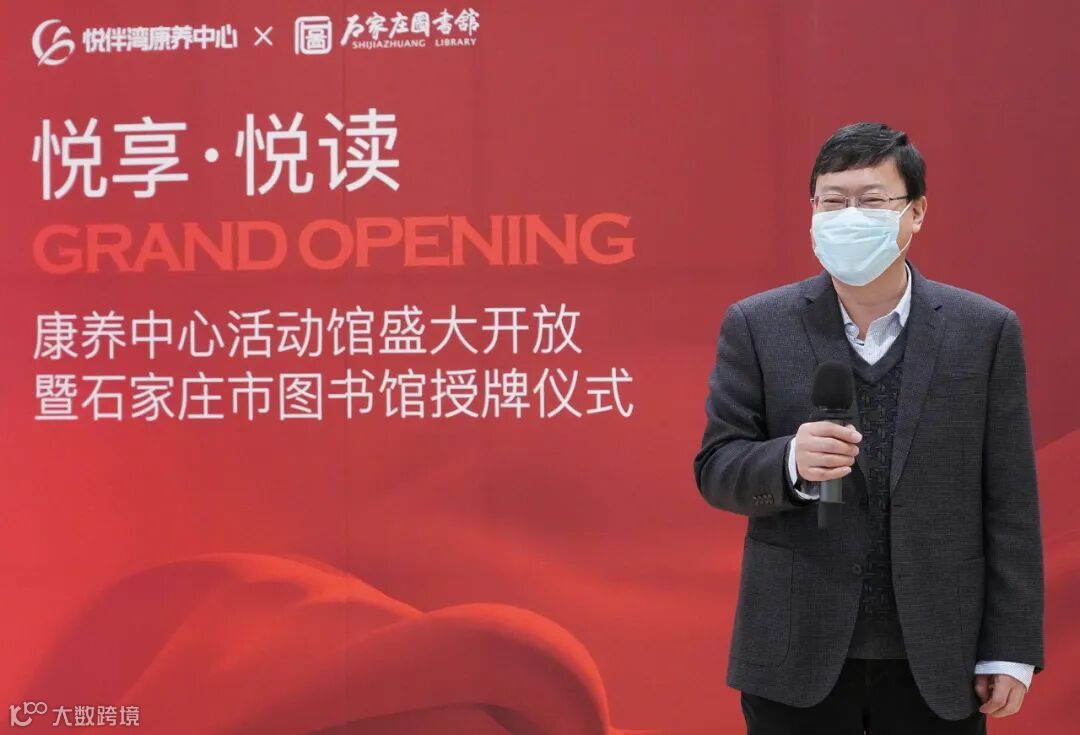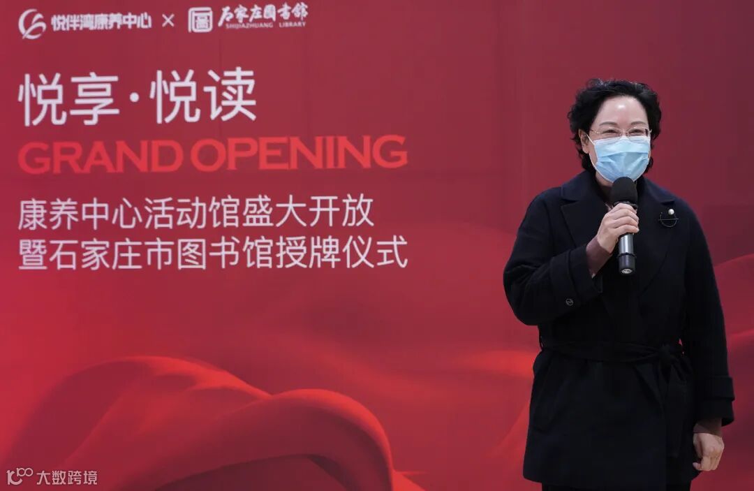 于少华为悦伴湾康养中心授牌并致辞。她强调,石家庄市图书馆在此设立阅读服务点,旨在将全民阅读与养老服务创新结合,进一步满足长者以及周边居民的阅读需求。石家庄市图书馆将在此持续提供健康养生、伟人传记、经典名著等老年朋友喜爱的书籍,满足长者们文化娱乐、情感交流、精神慰藉等需求。