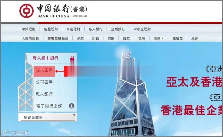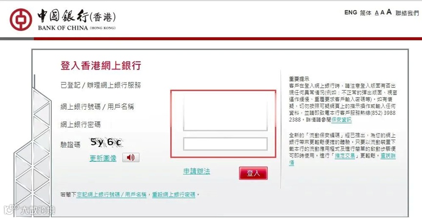 1、打开中银香港的网银 https://www.bochk.com/sc/home.html,用户登入网上银行