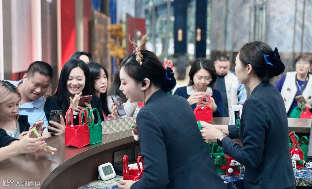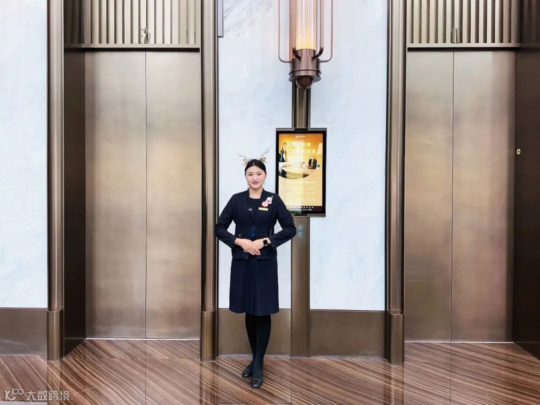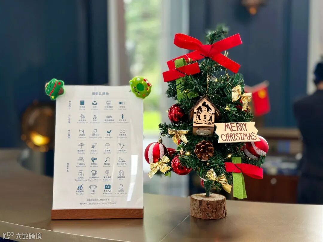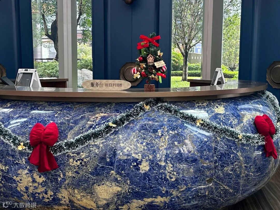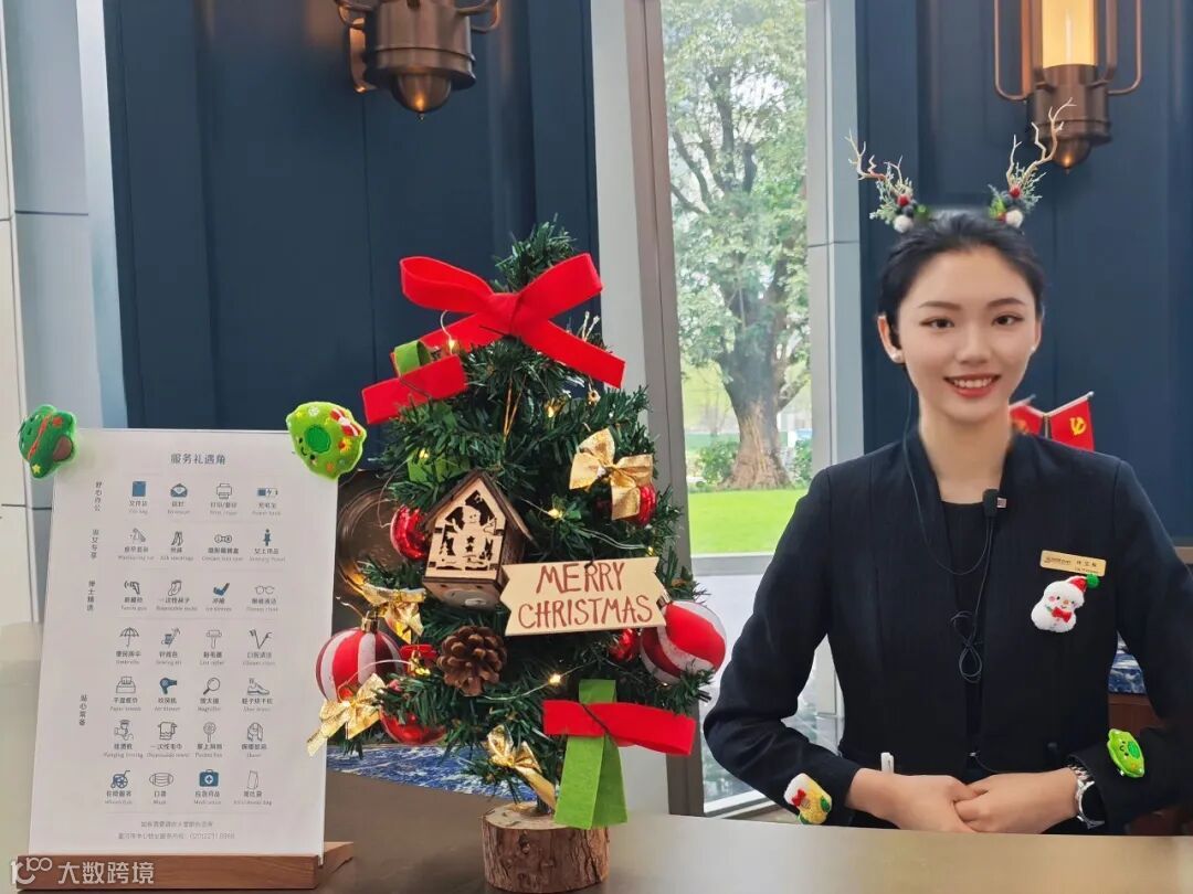 圣诞前一周,大堂换上温馨的圣诞装饰,圣诞树、挂满蝴蝶结的丝带,还有工作人员们佩戴的圣诞头饰,瞬间拉满节日氛围。