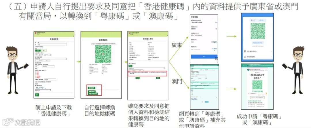 5. 申请人自行提出要求及同意把「香港健康码」内的资料,提供予广东省或澳门有关当局,以转换到「粤康码」或「澳康码」。