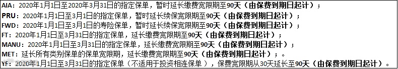 HK各大保险公司为内地人士临时延长保单缴费宽限期。