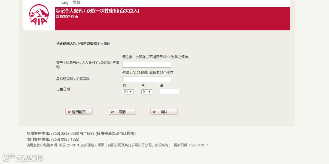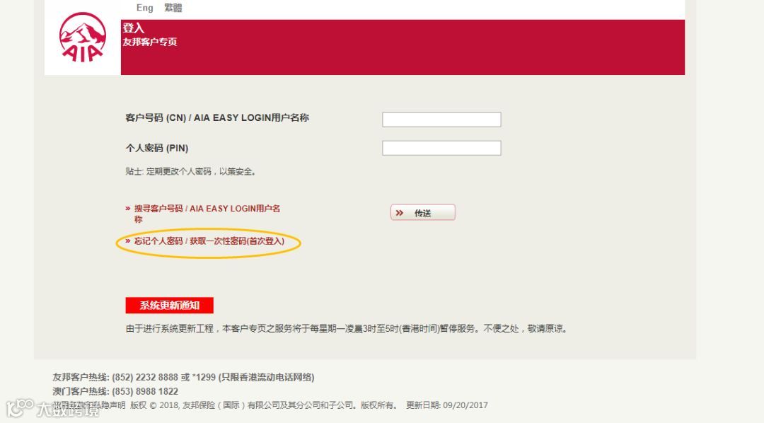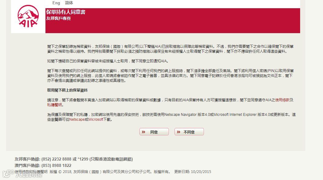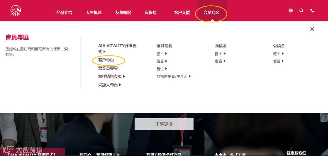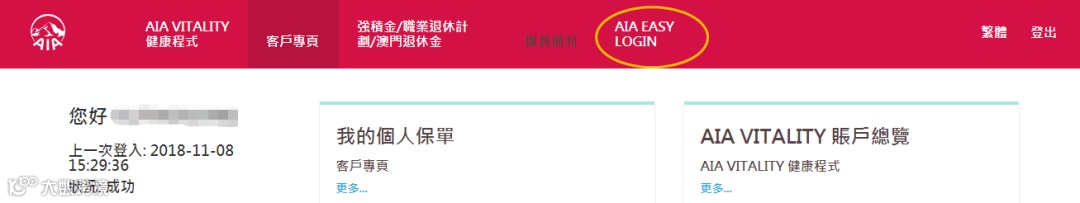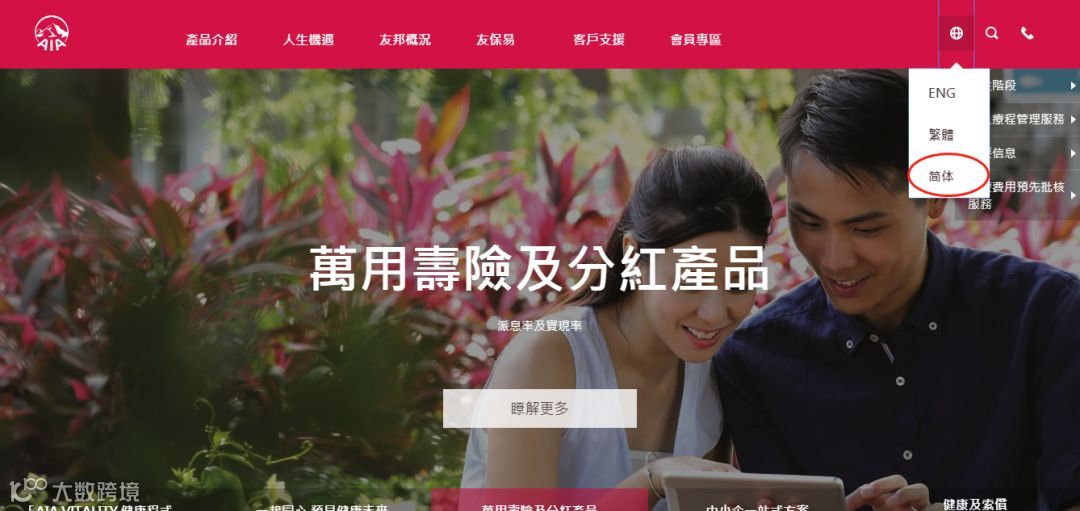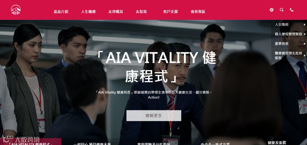 打开浏览器,输入网址http://aia.com.hk/进入以下页面