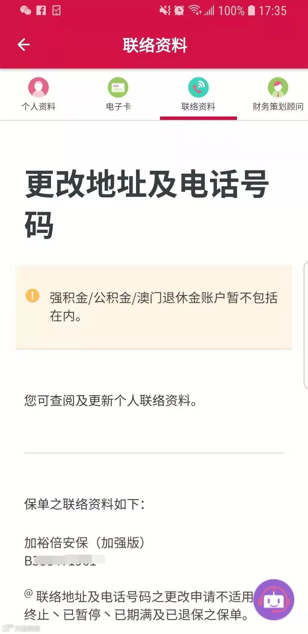 按 “我的保单资料” 便可以看到自己所有保单,包括缴费日期、保额、保费及保障范围等等。每年保单日期到期日,这个APP亦会提醒您缴交保费,确保您的保单能一直生效。