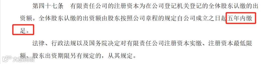 根据《中华人民共和国公司法(2024版)》第47条:“有限责任公司的注册资本为在公司登记机关登记的全体股东认缴的出资额。全体股东认缴的出资额由股东按照公司章程的规定自公司成立之日起五年内缴足。