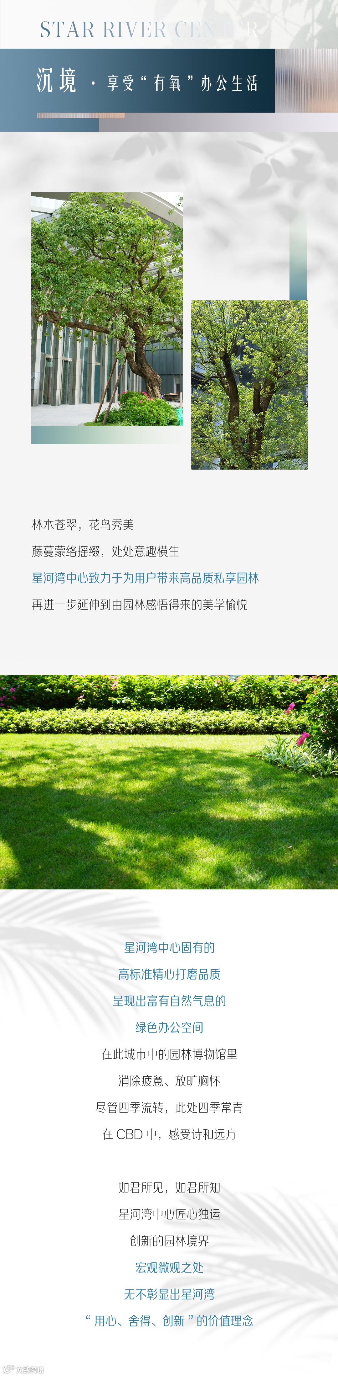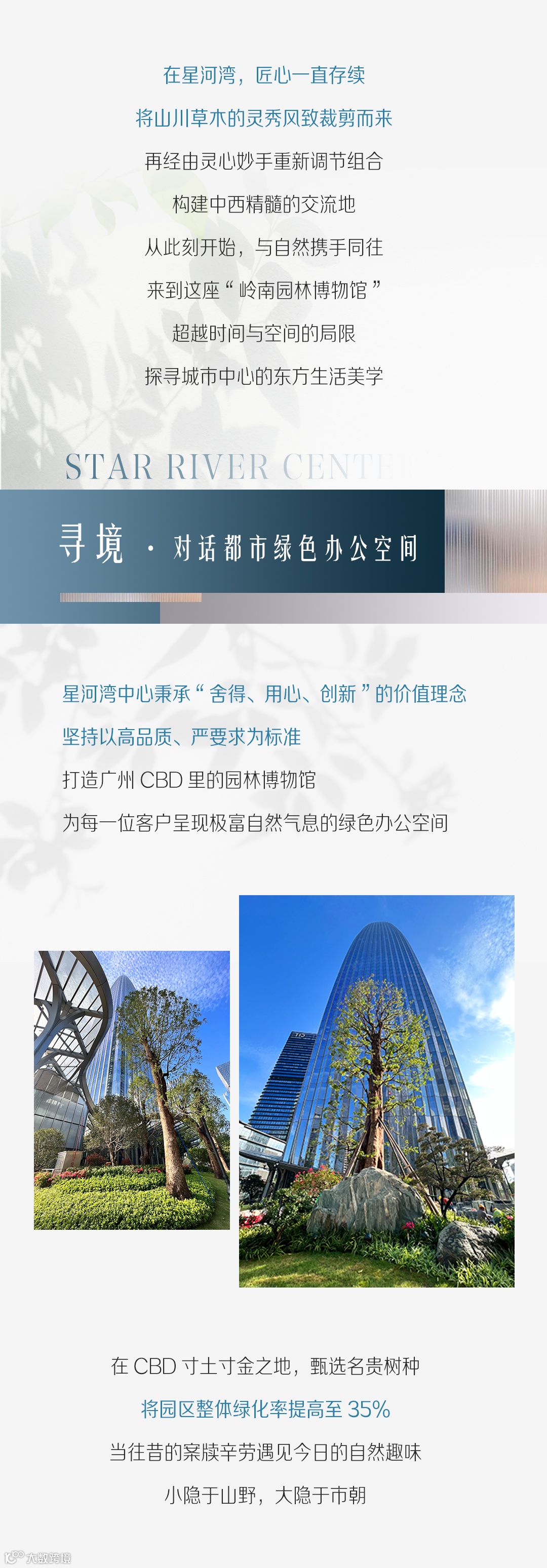 星河湾中心,位于大湾区新经济发展引擎——广州琶洲互联网创新集聚区,是星河湾集团集20多年城市建设、城市大服务及智慧应用经验之大成,以“舍得、用心、创新”价值观打造的首座超甲级写字楼,以东方美学与智慧科技为媒,诠释智能商务新场景。