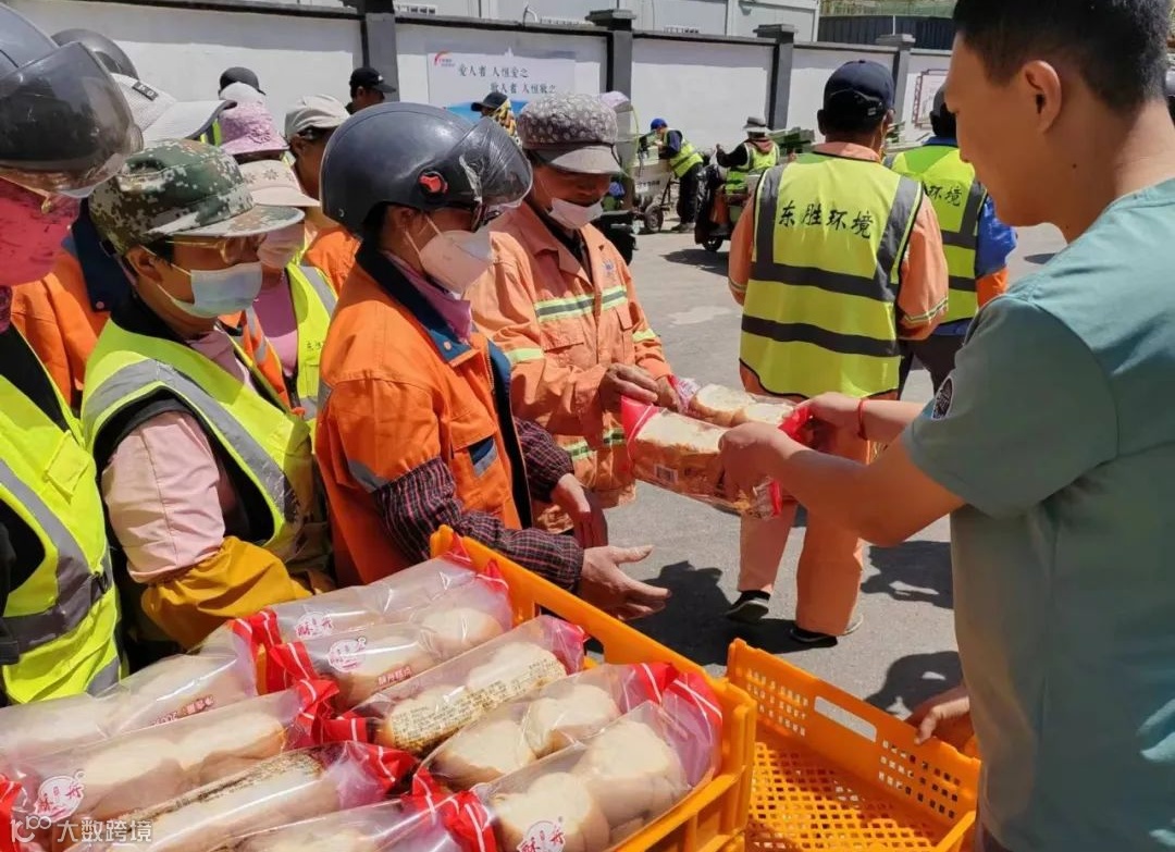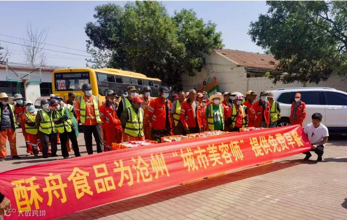 5月22日,刚刚结束完清扫工作,东胜环境沧州项目的环卫工人们便领取到一份份暖心的免费早餐,这次公益早餐活动由爱心企业酥舟食品有限公司提供。