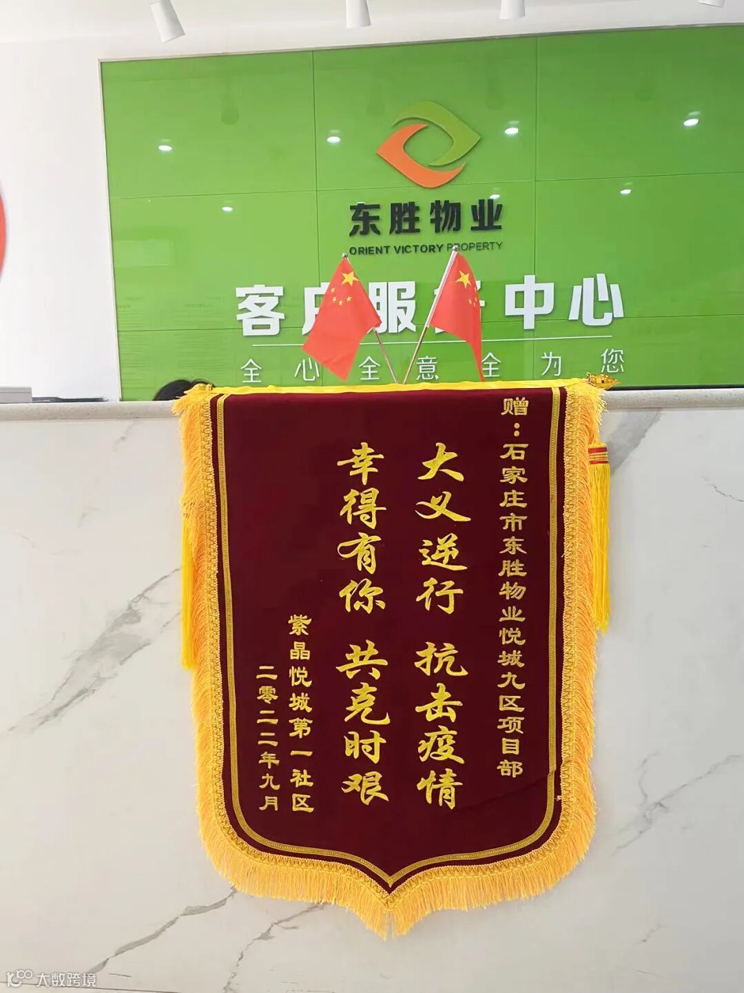 东胜物业紫晶悦城项目、棉四红色物业项目均荣获辖区居委会颁发锦旗,以表彰在疫情防控中,社区工作人员积极配合政府各级防疫人员、社区志愿者大义逆行,共同筑起一道道防线,用硬核的防控举措为业主生活提供可靠保障。