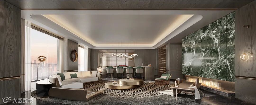 对于拥有成功事业的主人来说,一处空间与匠心的私属领域极其重要。平时在会客厅交流对话,结识人脉,悦享社交;周末邀上三五好友品茗聊天,在城央阔景中让快节奏的生活慢下来,把盏香茗,任幽香冲淡浮尘。