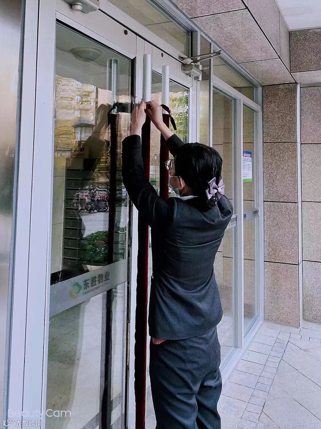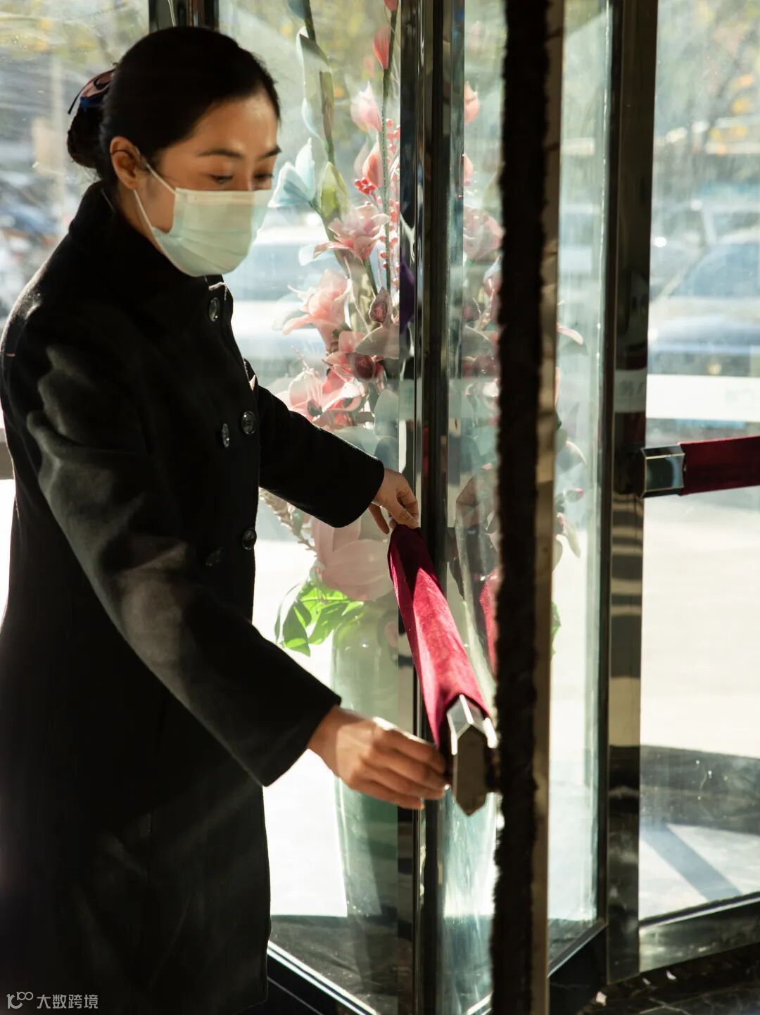 套在冰冷刺骨的门把手上