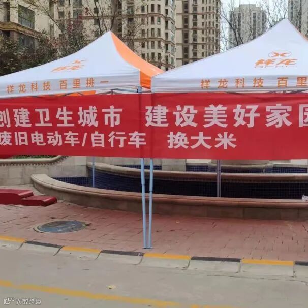 我们举办了废旧非机动车换大米活动
