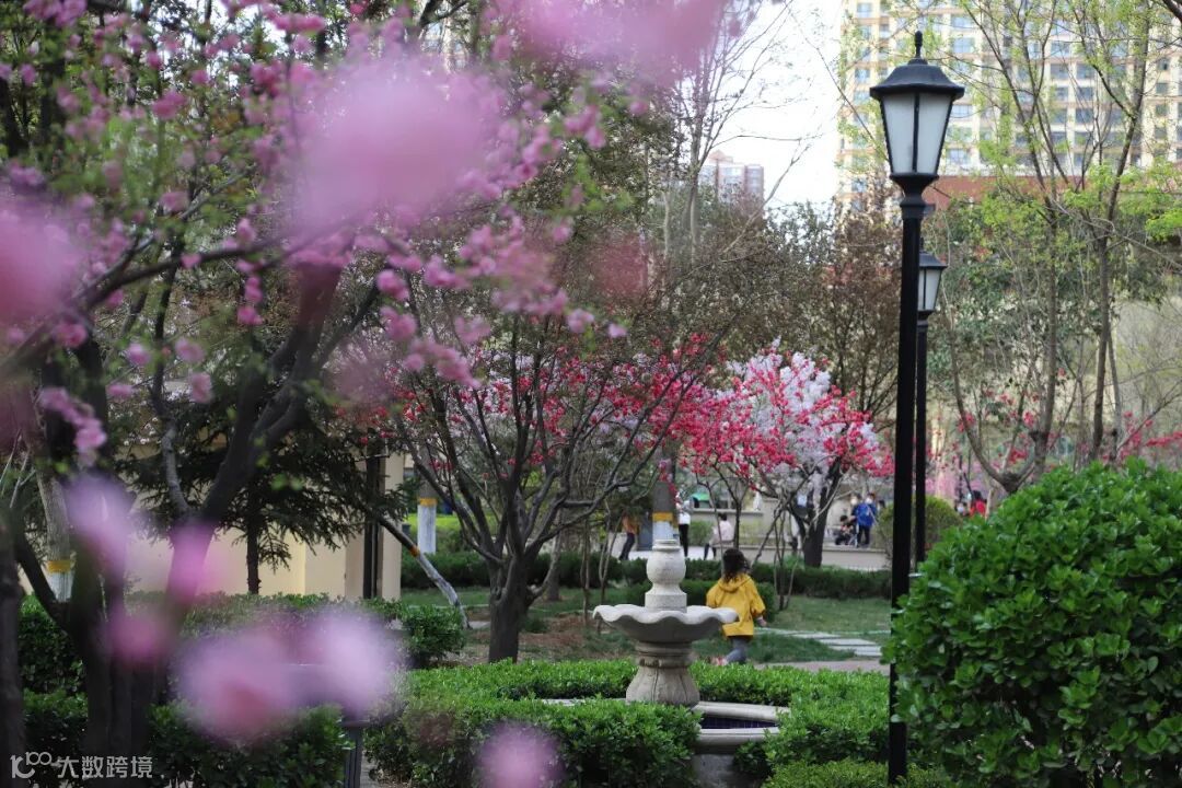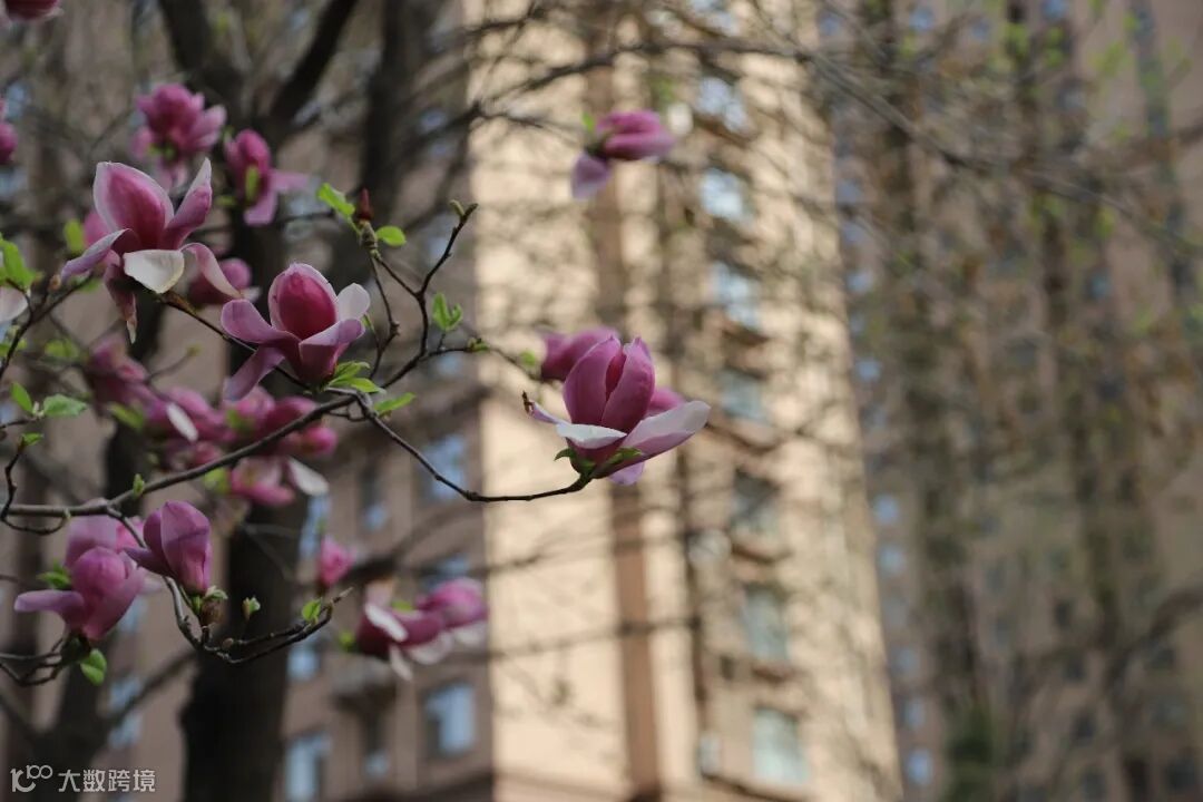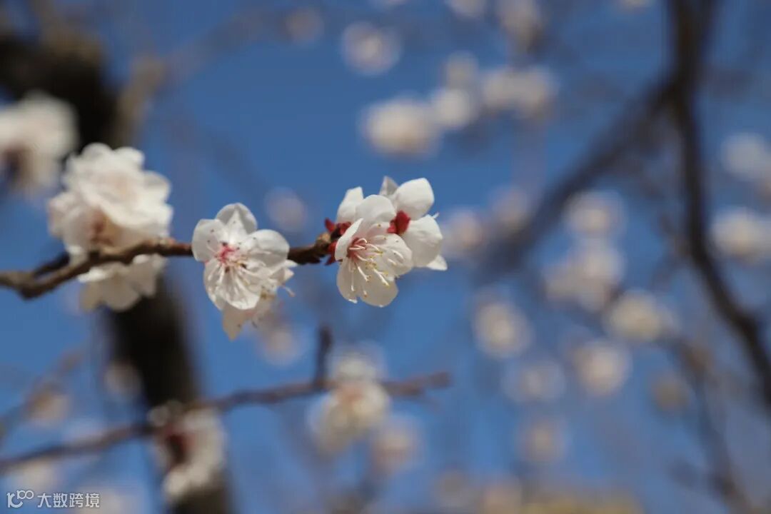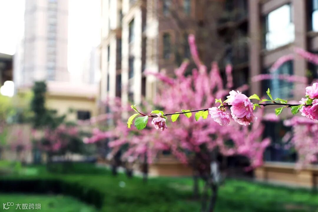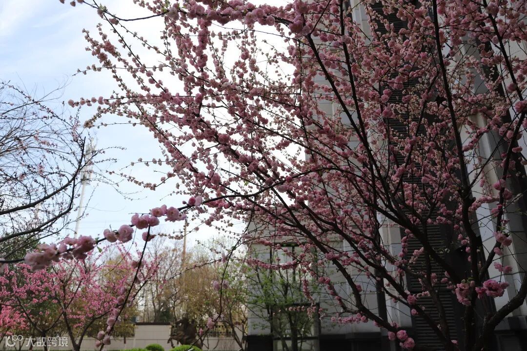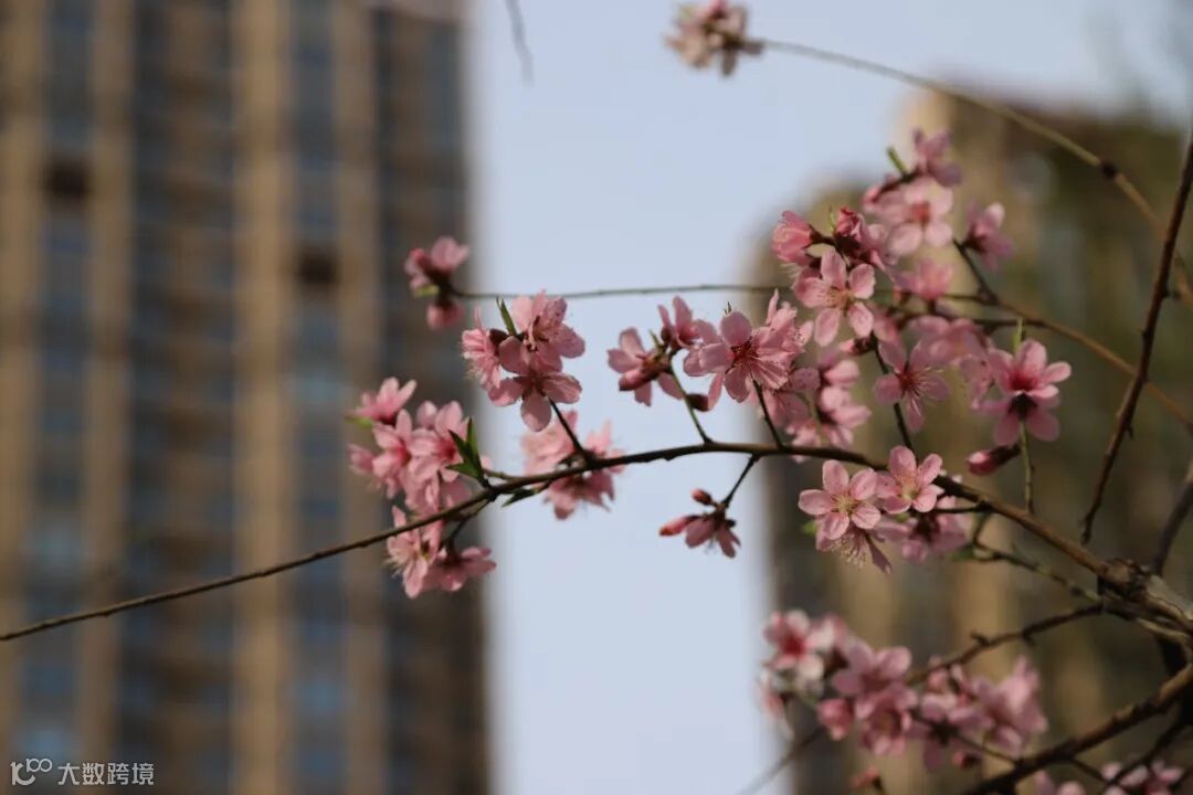 枝丫中冒出嫩绿的细叶和饱满的春蕾