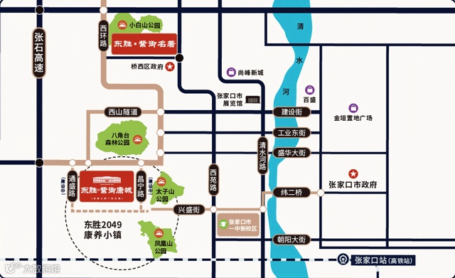 同时咫尺京张高铁经停站-张家口高铁站,立体交通路网,畅行四方通达繁华——安家东胜·紫御康城,居者轻松畅达四方,实现城市资源的交融互通,构筑无界都市生活圈。