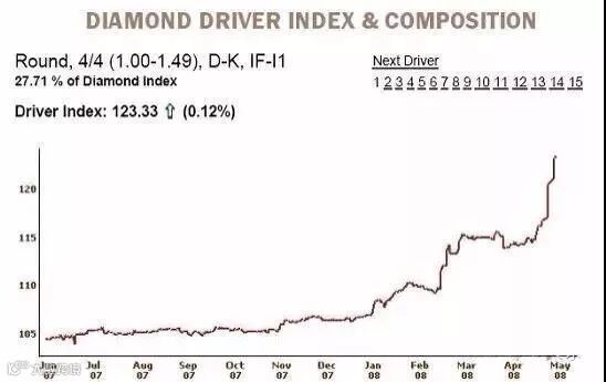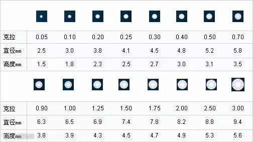 2、过了临界点的钻石比没有过临界点的钻石贵。比如30分、50分、1克拉就是临界点。举例说明:一颗98分的钻石(肉眼看跟1克拉一样大)比一颗同等级别的1克拉钻石便宜很多。50分的钻石比同等级别的49分钻石贵很多,但是看起来大小一样。所以懂行的小伙伴们以后可以按照这个来,购买接近临界点的钻石。