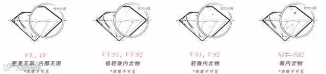 VVS(极微瑕级):分为VVS1和VVS2两级,钻石分级师在10倍放大镜下很难发现极微小的或很不明显的瑕疵。