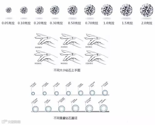 当然,手指的尺寸越小,钻石将会看起来越大。手指越粗,钻石看起来会越小。另外对于钻石的重量,你不得不知道的名词——克拉溢价。