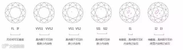 钻石的净度指钻石内外缺陷的程度,包括包裹体、解理、裂隙、双晶、生长纹和蚀象等内部和外部瑕疵。