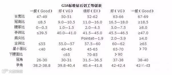 GIA对切工分级主要分为三部分:切工比例、修适度、抛光: