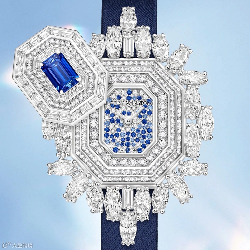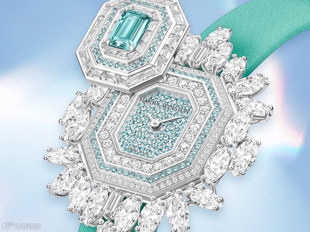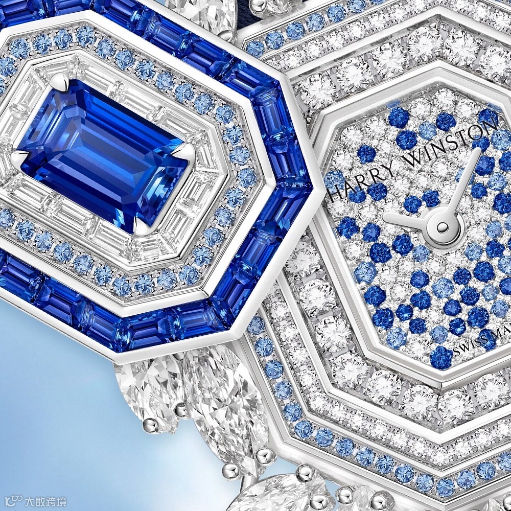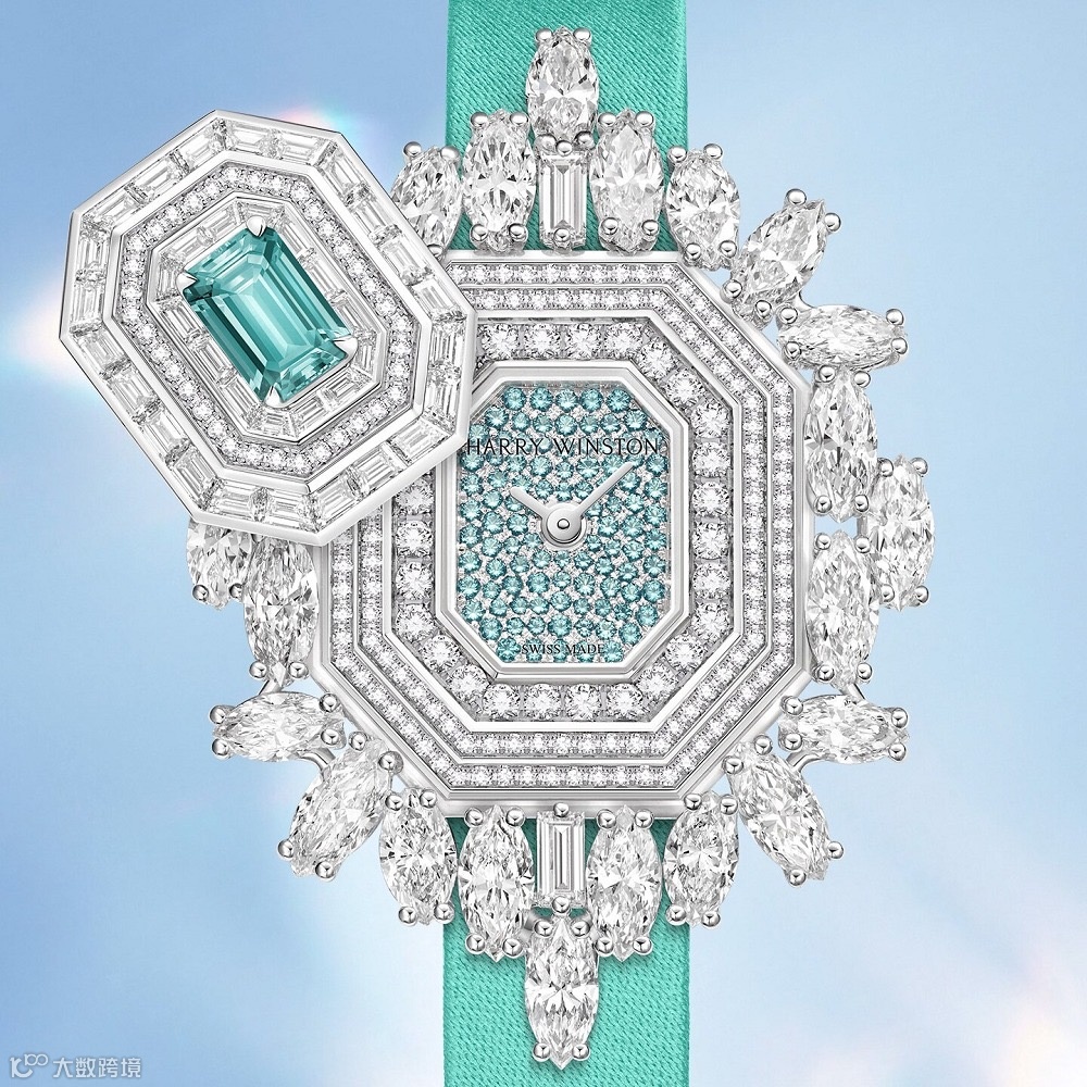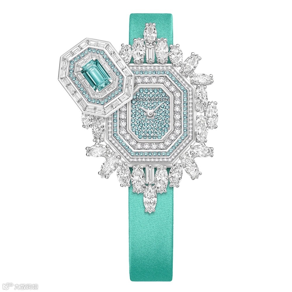 点击上方蓝字 关注我们Harry Winston 刚刚推出4枚 Ultimate Emerald Signature 高级珠宝腕表,依然延续这一系列标志性的八角形表壳,新作最特别之处是采用隐秘式表壳设计,拆下表带即可作为一枚胸针佩戴。隐秘式表盖采用蓝宝石、帕拉伊巴碧玺为镶嵌宝石,海蓝系色调为夏日带来清透氛围。