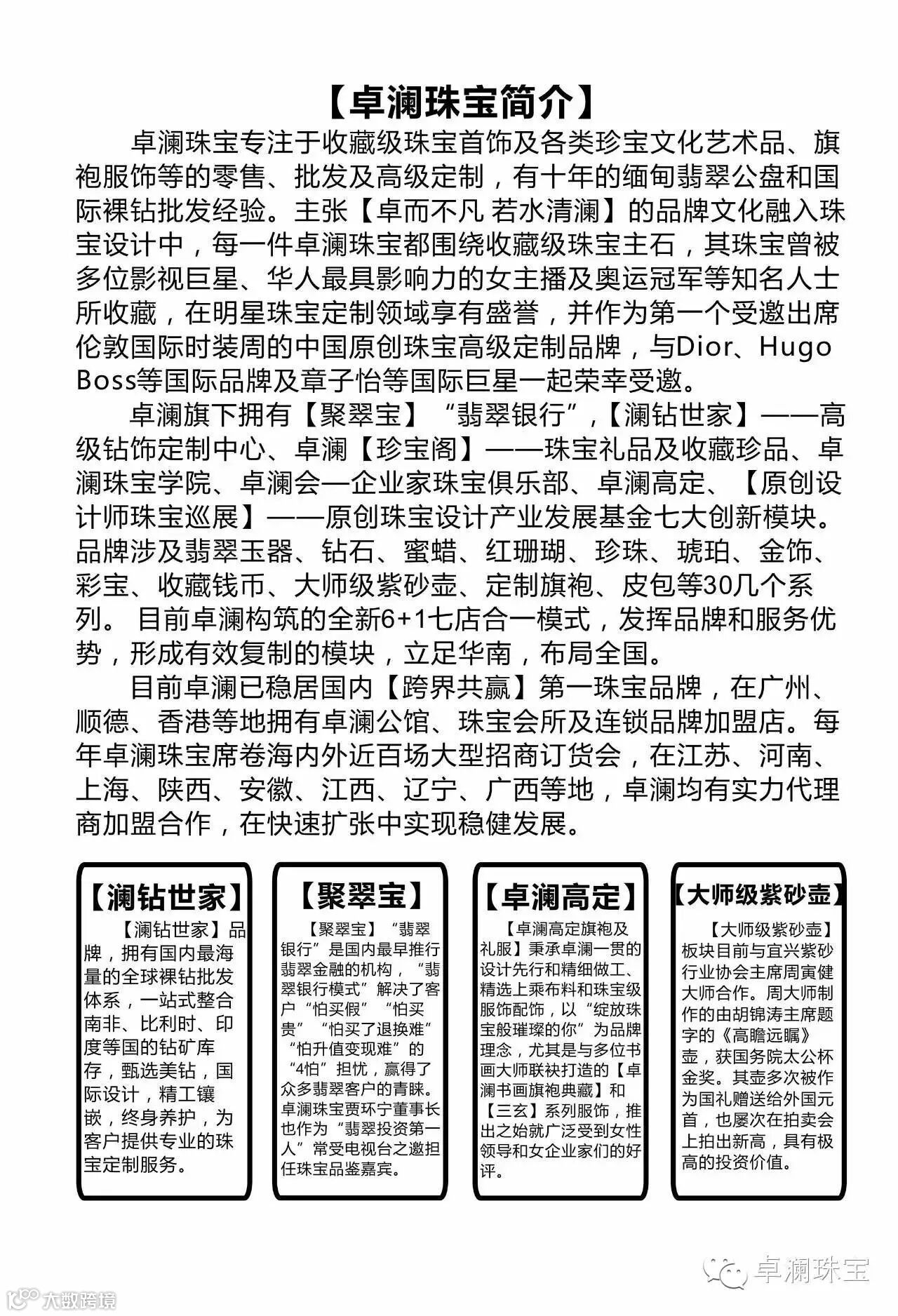 卓澜是集珠宝黄金加工厂、品牌珠宝电商、礼品集采、珠宝供应链及直播基地于一体的股份制企业,设计师贾宝玉姐曾为世界首富马斯克母亲提供珠宝服务,是岭南珠宝文创代表企业。卓澜学院为高净值人群研发珠宝美学文化课程,中标多家银行信托的礼品库和讲师库❤️