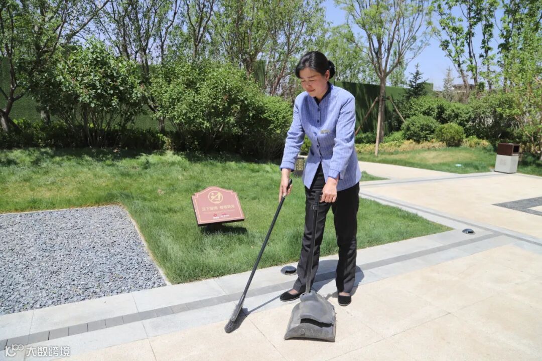 清洁园区,迎接业主踏出家门。