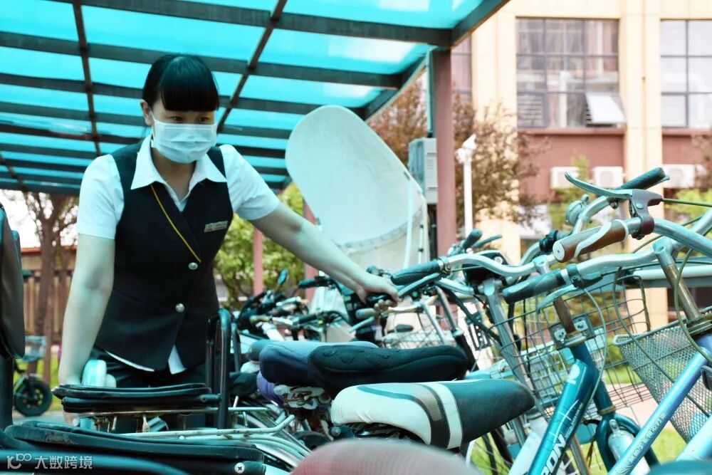 整齐的非机动车棚留下她的汗迹