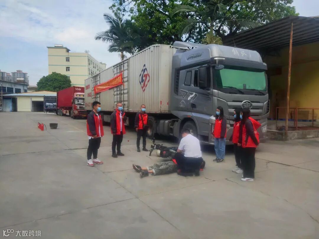 云达供应链董事长张飞组织主持本次应急消防演习,强调了消防安全和注意事项,讲解了灭火器的正确使用方法并演示使用——一提二拔三握四喷,迅速对准火源根部,将火源扑灭。