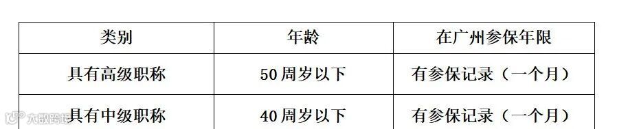 1、具有高级职称的人员,年龄50岁以下。有广州市社保参保记录(一个月)