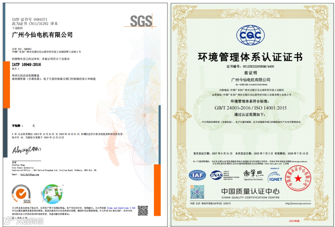 广州今仙电机有限公司成立于2001年广州市花都区,专业从事车辆座椅核心机构件的研发、生产、销售及服务,具有设计研发产品及模具和夹具开发能力,加工制造(冲压、涂装、焊接、组装)车用调角器、滑轨、座椅电机、座椅骨架、备用电源等。