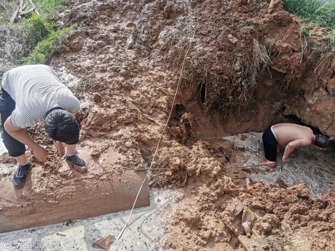 5月27日大吾川项目园区大川渠(东大吾口)往园区注水,因水渠内淤泥、垃圾过多,1号岗处过路涵管严重堵塞。勾机只能挖开管道口,无法进行疏通,需要人工下淤泥内进行清掏。员工李二伟(秩序员)看到情况不乐观丝毫没有犹豫,脱了衣服就跳进了淤泥中奋力抢修,在水下疏通了一个小时之久,在场所有人看到都为之动容。