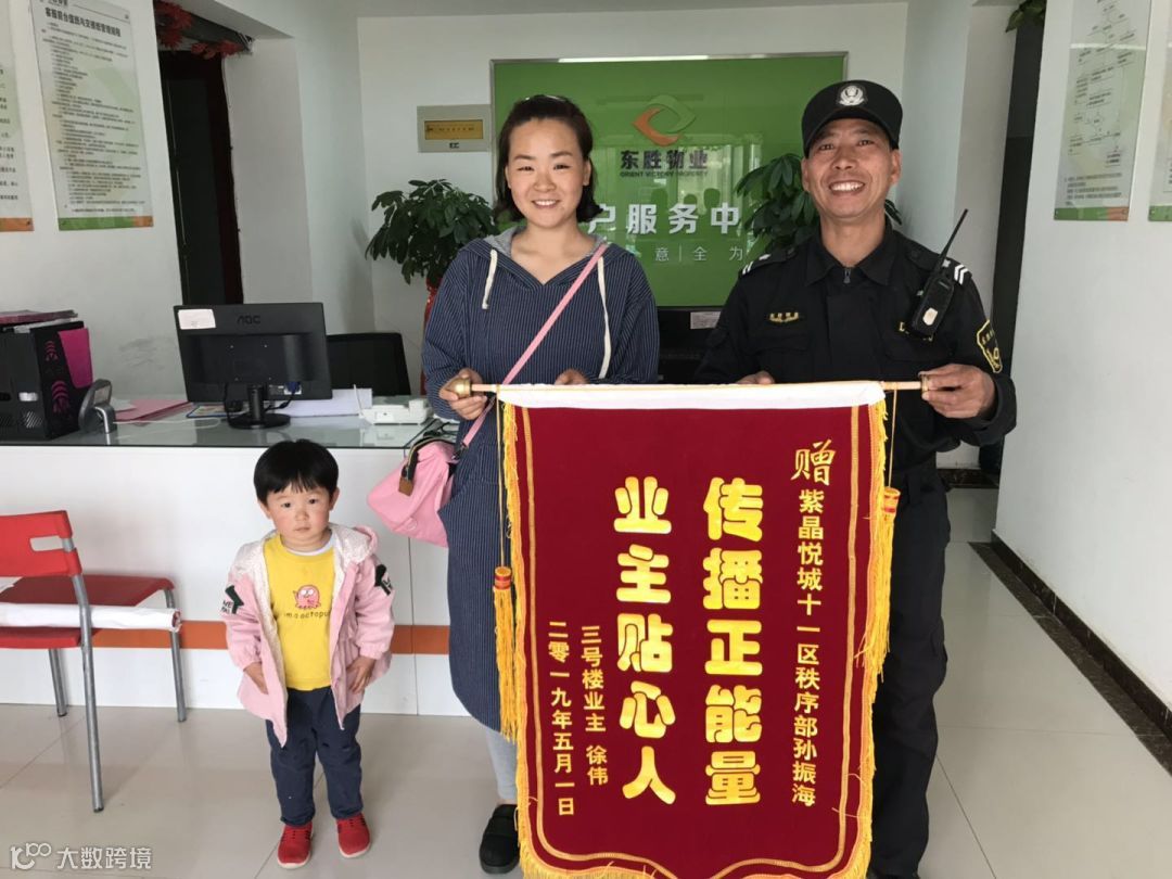5月27日下午4点左右,紫晶观邸秩序员王吉波上班期间正常巡逻,在写字楼A座捡到一个手包,内有手机、银行卡、几百元现金、钥匙、身份证等贵重物品。想到失主丢失东西肯定着急,王吉波在原地等候。他正准备把手包送往客服中心时,业主的电话响起。原来是写字楼A座5层一家网络公司的女员工丢失的。看到自己的手包失而复得,失主连连感谢“谢谢你们物业,谢谢王师傅!”