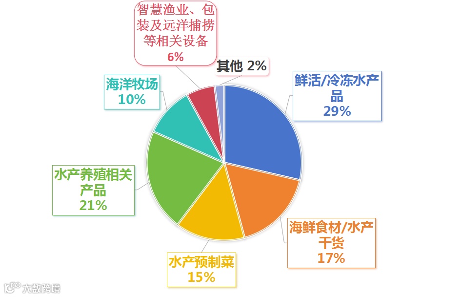 水产养殖技术与设备、饲料、药品、水产综合利用技术与设备、休闲渔业设备等;