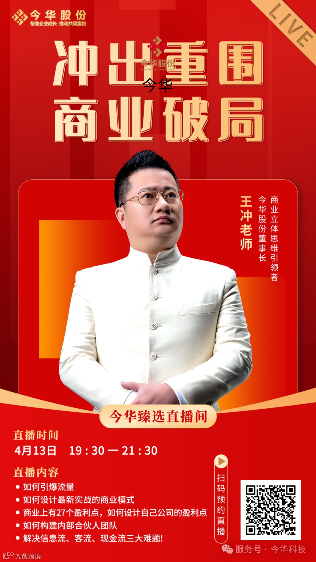 商业立体思维引领者时间:4月13日(周日)19:30-21:30直播内容…🔥如何引爆流量🔥如何设计最新实战的商业模式🔥商业上有27个盈利点🔥如何设计自己公司的盈利点🔥如何构建内部合伙人团队货解决信息流、客流、现金流三大难题!扫码图片二维码进入直播间预约学习,或点击阅读原文