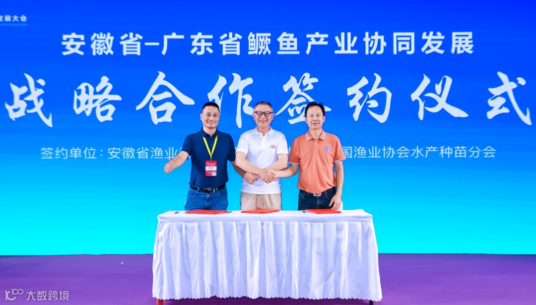 为了促进全国鳜鱼产业的健康可持续发展,广东省渔业协会、安徽省渔业协会及中国渔业协会水产种业分会将集合自身的资源优势,共同携手促进两地的深化合作,将在苗种、养殖、流通、加工、品牌建设、标准制定等领域加强合作、互惠共赢,安徽省与广东省在鳜鱼产业协同发展战略合作,安徽省渔业协会、广东省渔业协会、中国渔业协会水产种苗分会进行了隆重的签约仪式。广东省渔业协会副秘书长、中国渔业协会金鲳鱼分会秘书长彭树峰,安徽省渔业协会副秘书长于朝阳,中国渔业协会水产种苗分会副会长兼秘书长陈杰明共同上台签约。