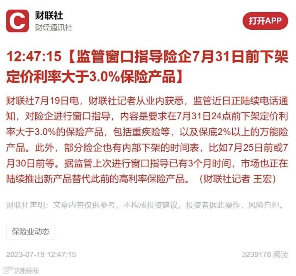 内地保险利率下降