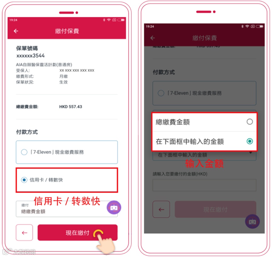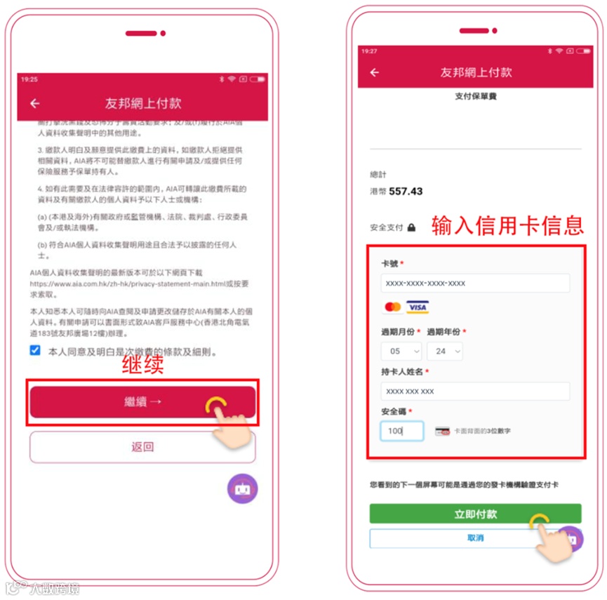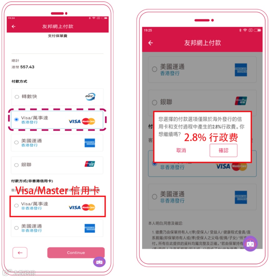 需要注意的是:刷卡不能超过37000港币,需要小于37000港币(等于也不行),不然页面跳转时不会再出现信用卡缴费选择项;