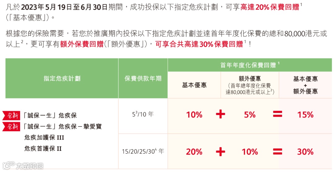 6月30日前,投保重疾险「诚保一生」危疾保或「诚保一生」危疾保-挚爱保,保费回赠高达30%,相当于第二年保费7折。