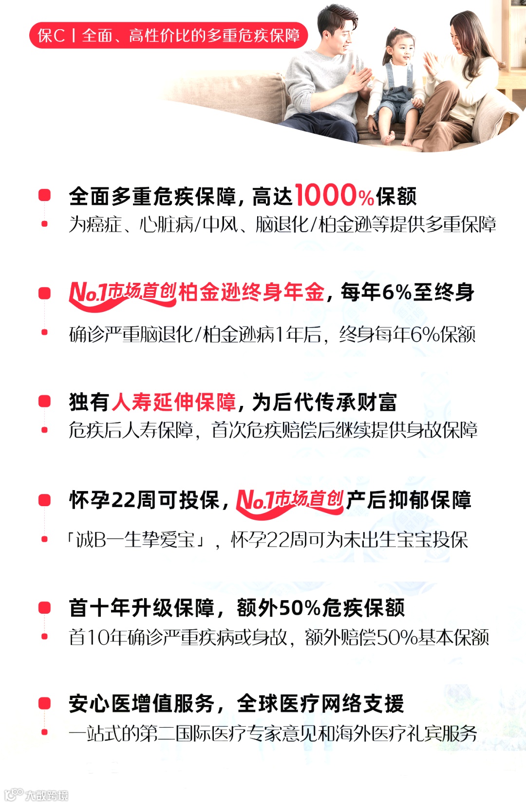 自由健康的香港保险市场孕育出高性价比的产品,通关后的香港保险市场充满活力与生机,恰逢保诚175周年之际,特别推出一款重疾产品,主打全面多重保障+高性价比+175周年特惠,从“生老病死”出发,保障一生,多重危疾和人寿保障高达1100%(多重危疾1000%+人寿100%),首创柏金森病终身年金、产后抑郁赔偿等功能,首10年升级保额更高达175%!