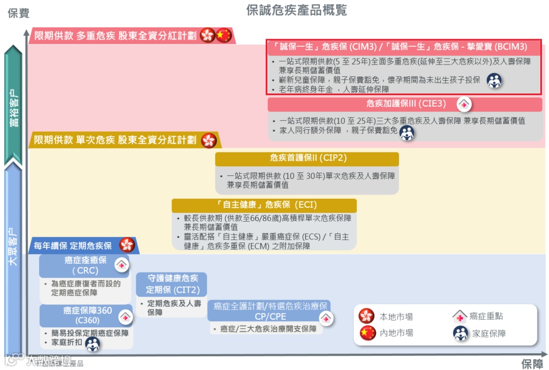 保诚「诚保一生」是顶配版重疾险,有「诚保一生」和「诚保一生挚爱宝」两个版本,前者为成人和孩子而设,后者为孕妇和将要出生的孩子而设,适合不同人生阶段的家庭。