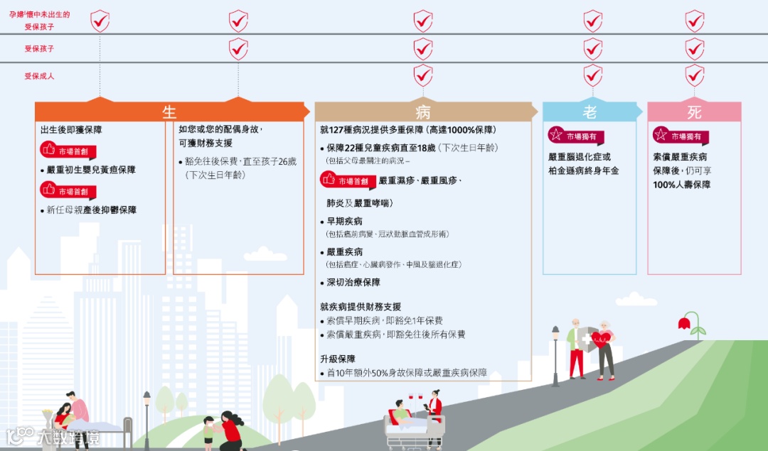 如果说有一款产品照顾到了人的出生期、幼儿期、中年期、老年期,无论在重大疾病还是经济支付能力的缺口上,以及老年病维持生活能力上,都面面俱到。