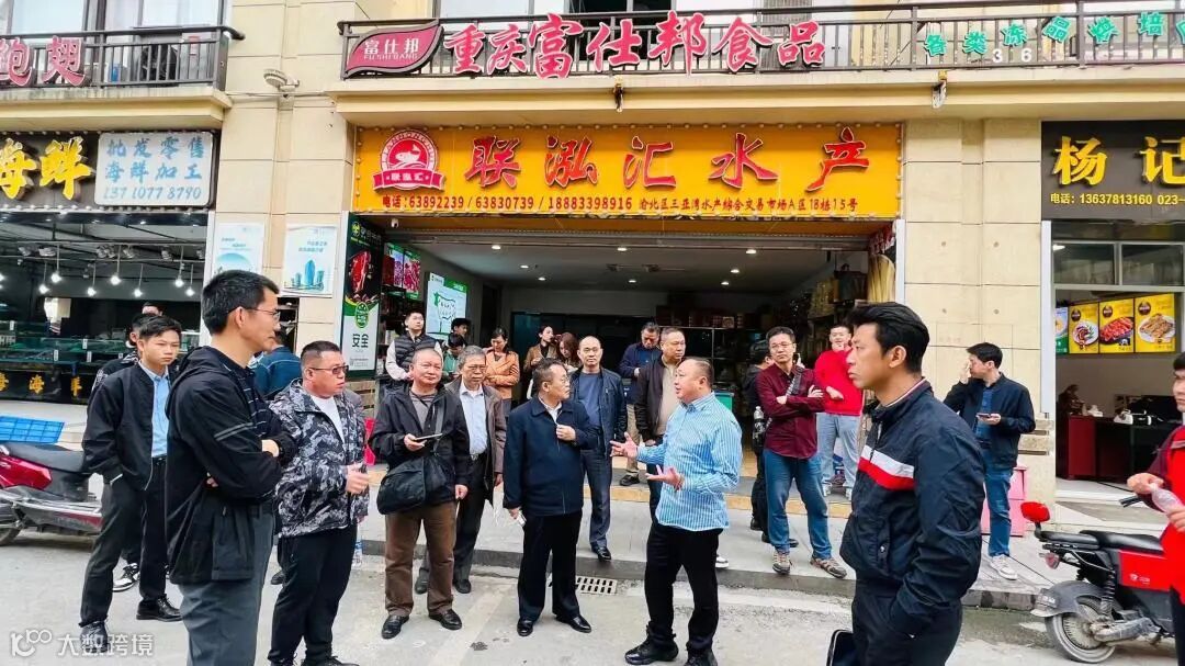 下午,考察团来到了西部最大的水产品综合交易市场——重庆市渝北区三亚湾水产市场。重庆市渝北区三亚湾水产商会会长韩群勇携秘书长栗宝林及商会理事伍小波为考察团介绍了市场的概况,并邀请相关门店负责人到商会就广东水产品如何进入重庆市场展开座谈,成轩海鲜伍总表示会助力广东大疆渔水产养殖有限公司的澳洲银鲈鱼进入重庆高端消费市场,将在门店售卖澳洲银鲈。