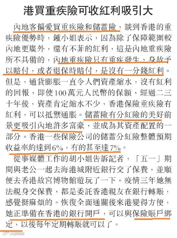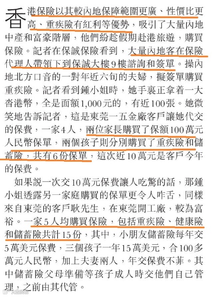 以下是来自文汇报5月2日关于香港保险火爆的报道,其实不说大家也知道