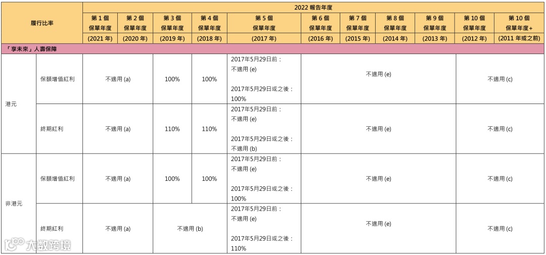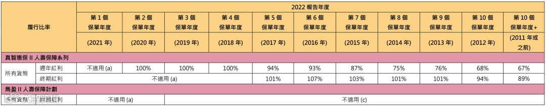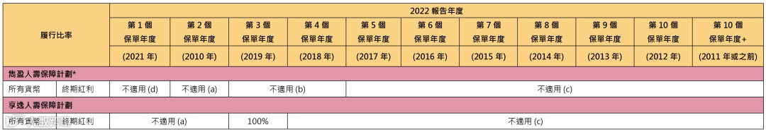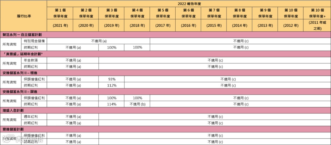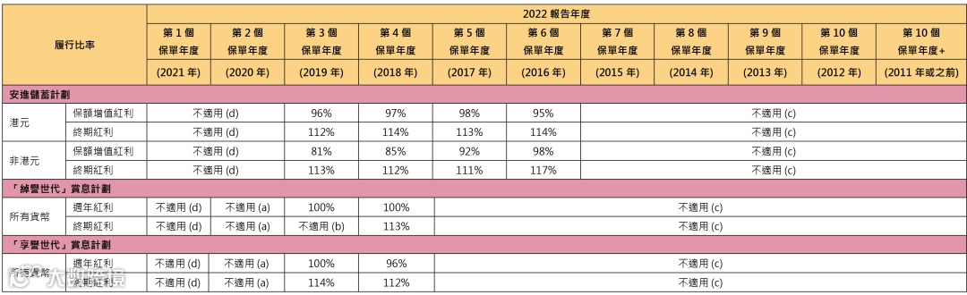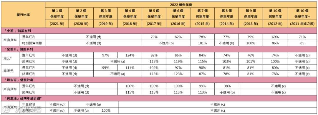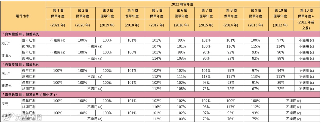 分红实现率适用于由2010 年起、及于最近五年内曾发出新保单的分红产品。