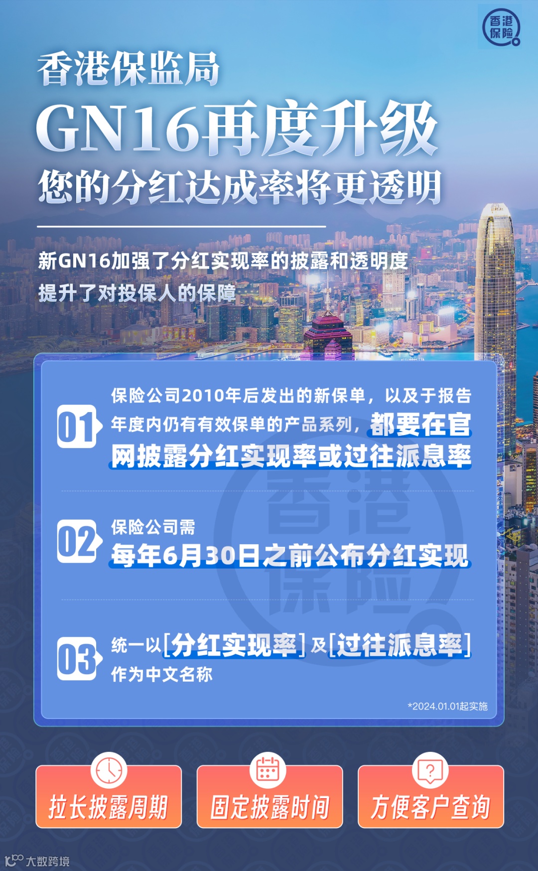 为了协助保单持有人了解过往分红表现,香港保监局升级GN16指引,明年1月1日起生效,加强了分红实现率的披露,提升了对投资人的保障!