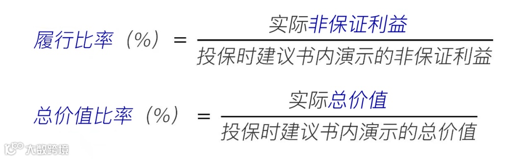 履行比率:实际派发的非保证分红和计划书演示预期分红的比值。