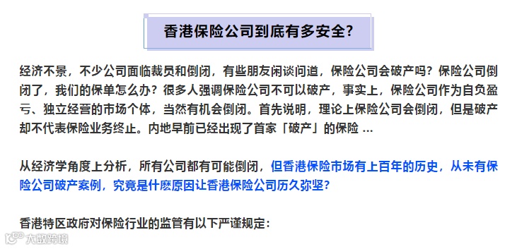 最近客户咨询香港保险比较多,有些客户比较关心香港保险公司的安全性的问题,这里和大家做一个总结分享。