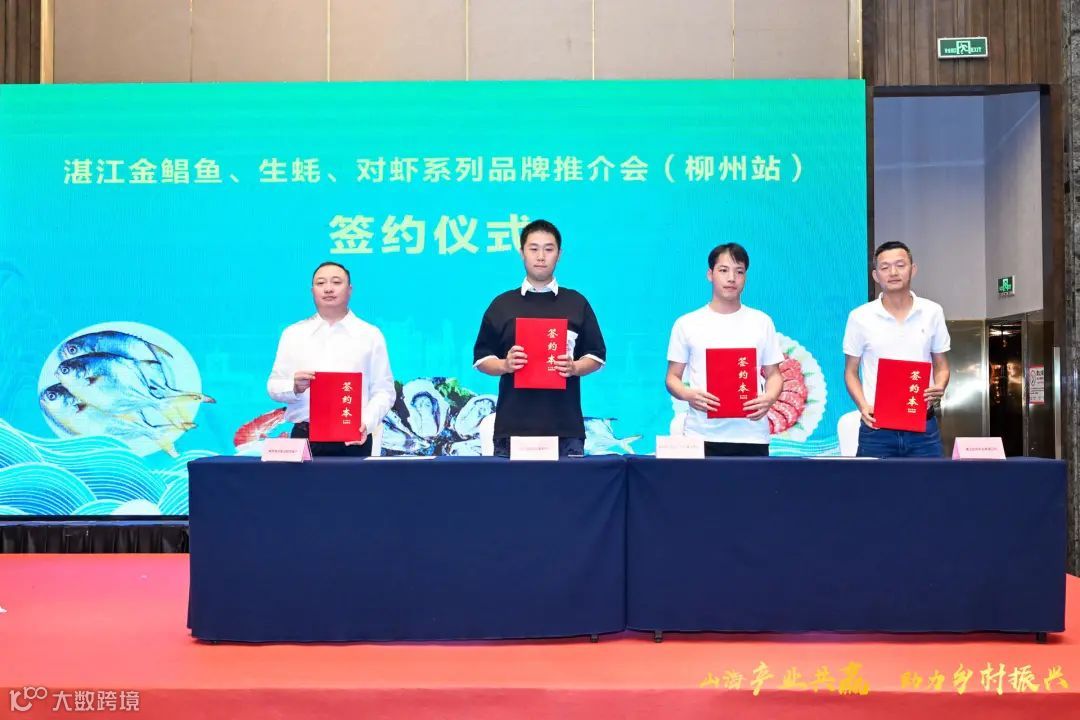 在推介会现场,举行了战略合作签约仪式,分别是中国渔业协会水产商贸分会与湛江市水产流通与加工协会,四川省火锅协会与湛江市生蚝产业协会,重庆聚成轩商贸有限公司与湛江海边姑娘食品有限公司,四川蜀九香企业管理有限公司与湛江市雅洲食品有限公司,上海渠洋国际贸易有限公司与 柳州海吉星北部湾海产,重庆市渝北区三亚湾水产商会与湛江经纬实业有限公司。