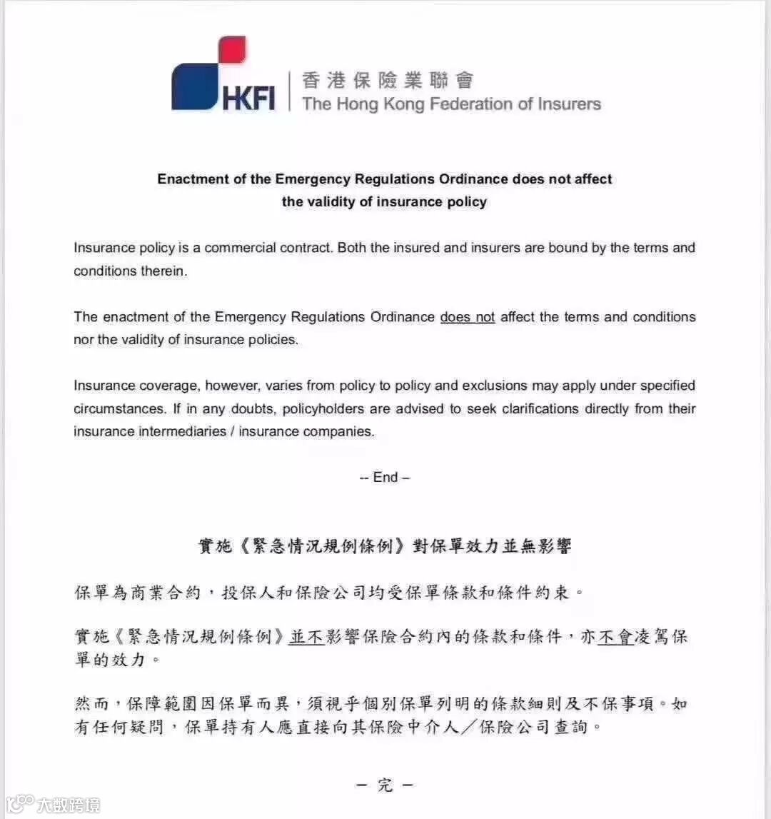 我们要把香港保单和公众事件分开看待。香港保单大部分是以美元计价,保费是全球投资,所以香港的事件对保单收益来说影响甚微。