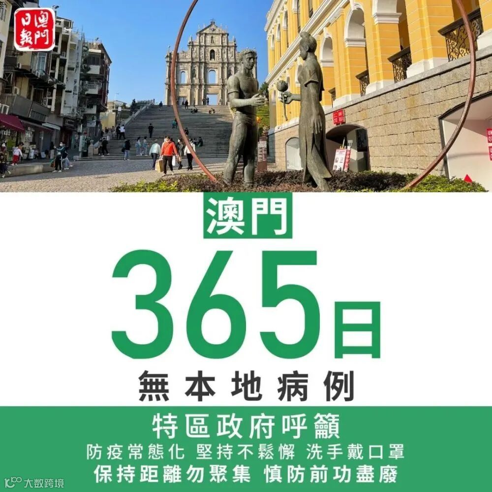 截至今日,澳门已整整一年即连续365天无本地病例报告(包括无症状感染者),连续51天无新增病例报告。累计确诊病例48例,累计死亡病例0例,累计出院48例。46例为境外输入病例,仅2例为输入相关病例,无任何医务人员受到感染。